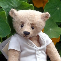 今日も我が家のテディベアをご紹介します。写真のクマはウィットニーのイヤーベアがスタートするずっと以前の、1999年に発表された「ウィットニー・ベア」です。昔ながらのイングリッシュテディベアをイメージして作られました。写真の仔は我が家のウィットニー君。娘が生まれたときにイアンさんから贈っていただいた思い出深いベアです。