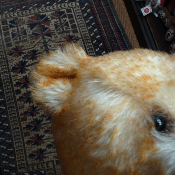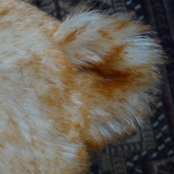 黒いグラスアイ。 光沢のある糸で刺繍された鼻と口。