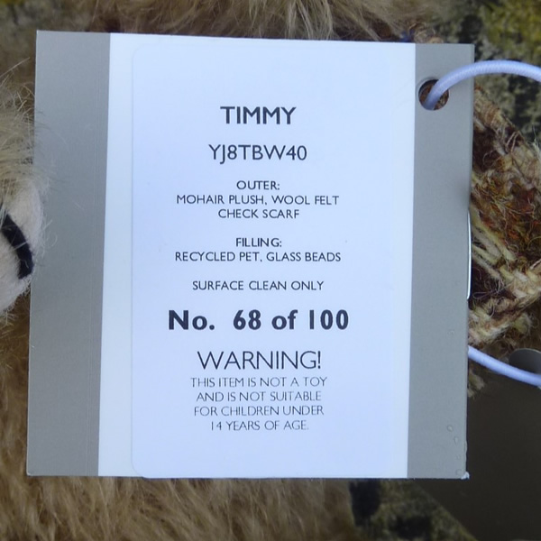 「ティミー」は、ウィットニーのオーナー、イアン・パウトさんが1946年にご両親から贈られた、チルターン社製テディベアを元にデザインされています。