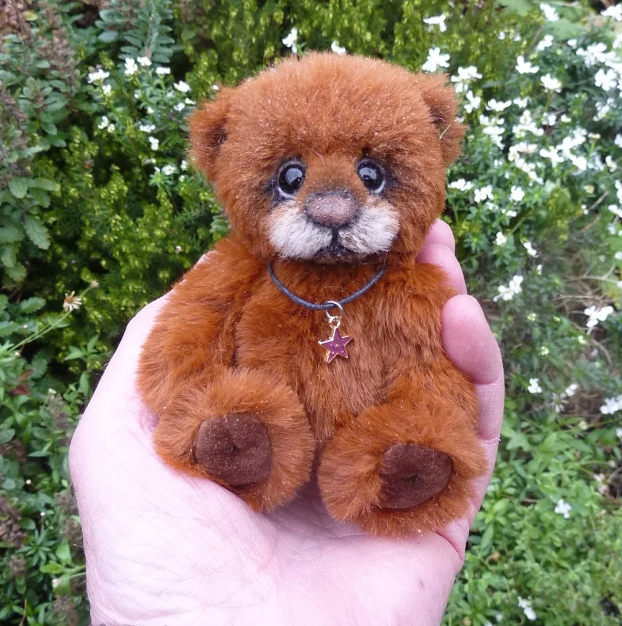 手のひらにちょこんと座ることができる、小さなサイズのテディベア。