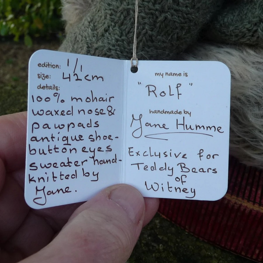ヨーロッパにおけるテディベア界の草分け的存在、オランダの人気作家、Jane Hummeさんの作品。 1点ものです。