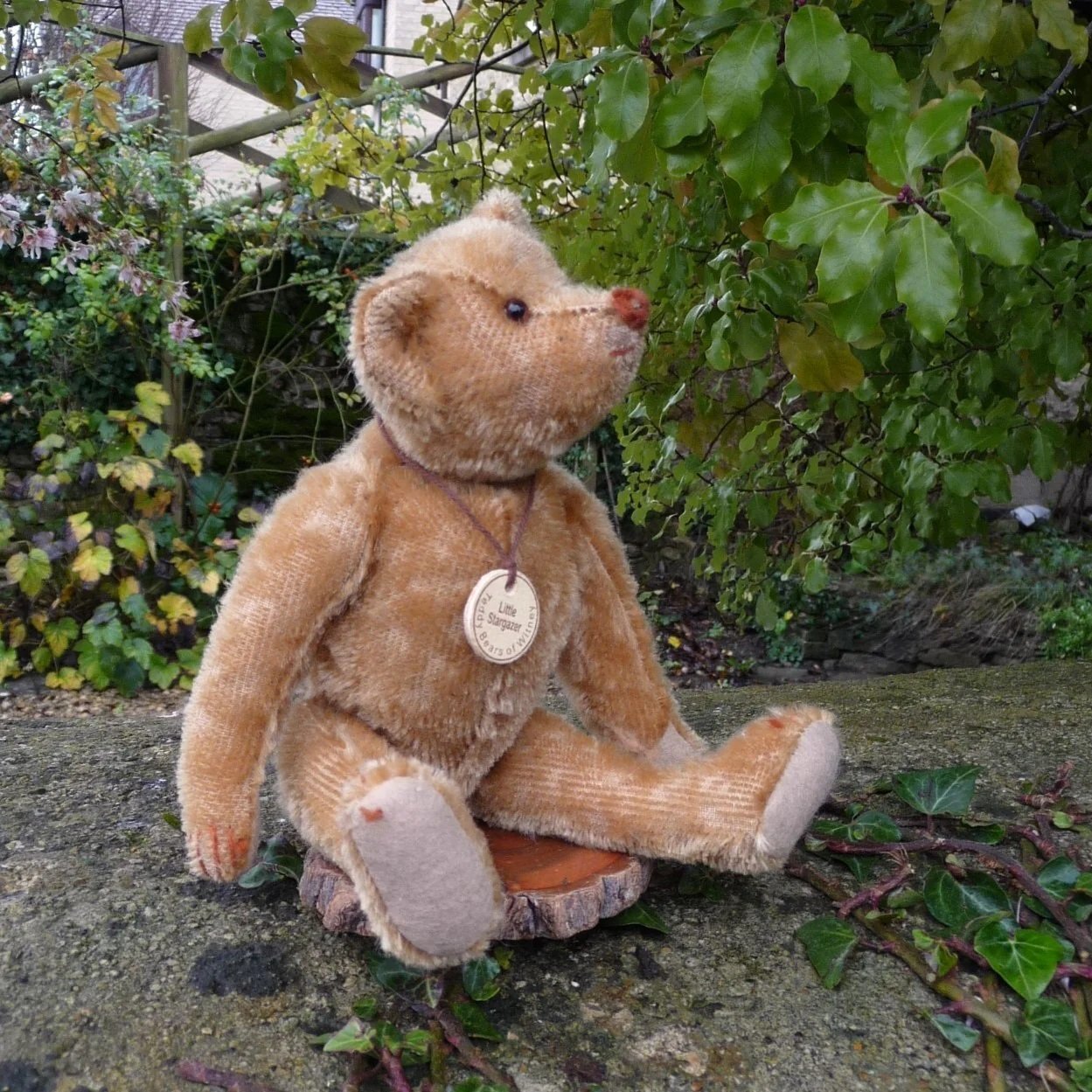 ウィットニーのオーナー、イアンさんがアメリカのアンティークショップで出会った、空を見上げるようにお顔を少し上に向けたテディベアが、スターゲイザーのオリジナルベアです。恐らくシュタイフのベアであるとして売られていましたが、後になって1908年〜1910年のわずかな期間存在していた、ニューヨークのHecia社のものであると分かりました。