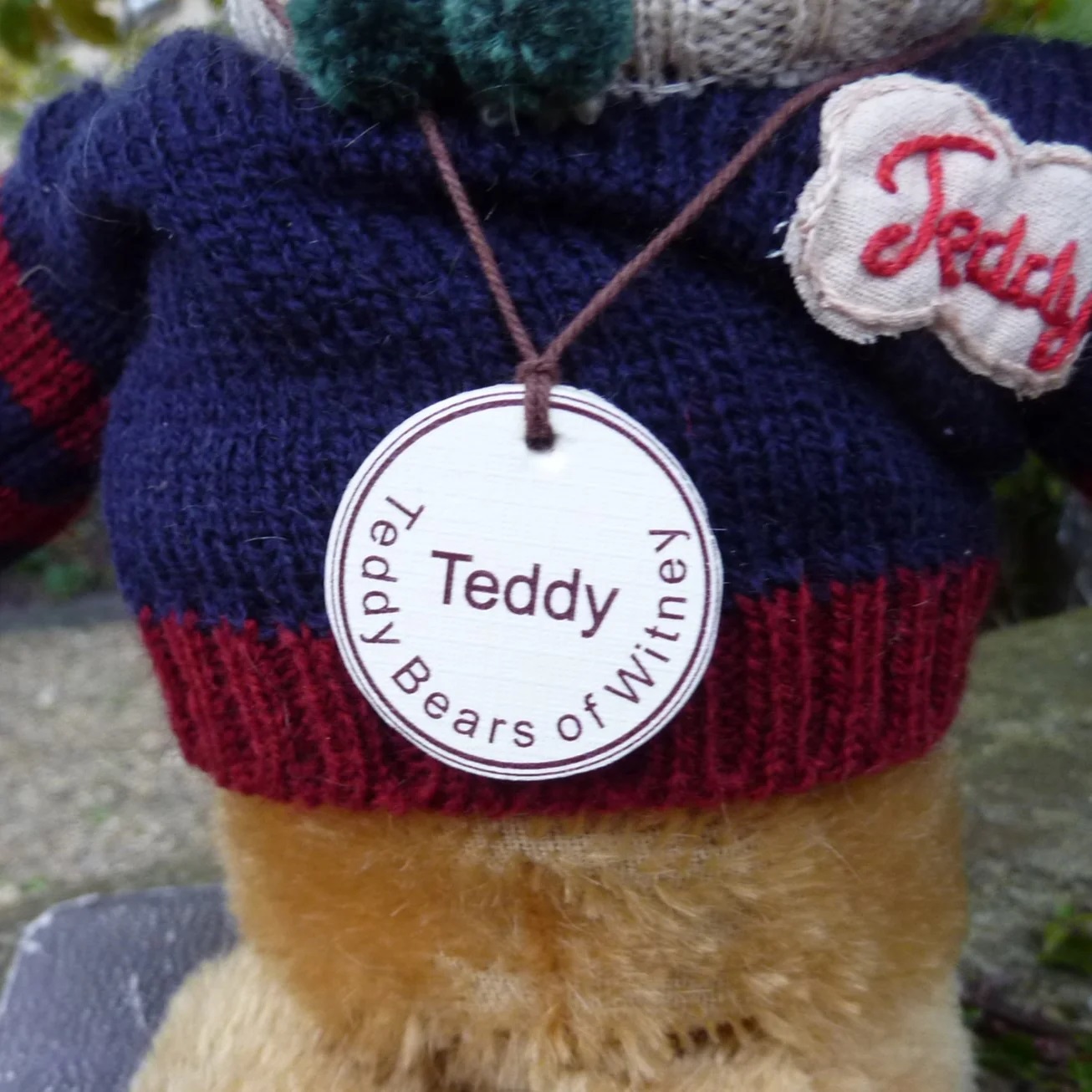 ニットのセーターもオリジナルベアが着ているものにそっくりですが、本物のようには擦り切れていません。