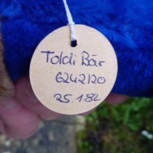 もともとボタンは付いていませんが、ミントコンディション(新品のような大変良い状態)で、チェストタグに加えて1985年の日付(25.1.82)が入った手書きのシュタイフアーカイブラベルが付いています。