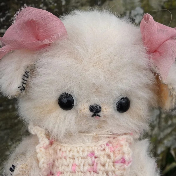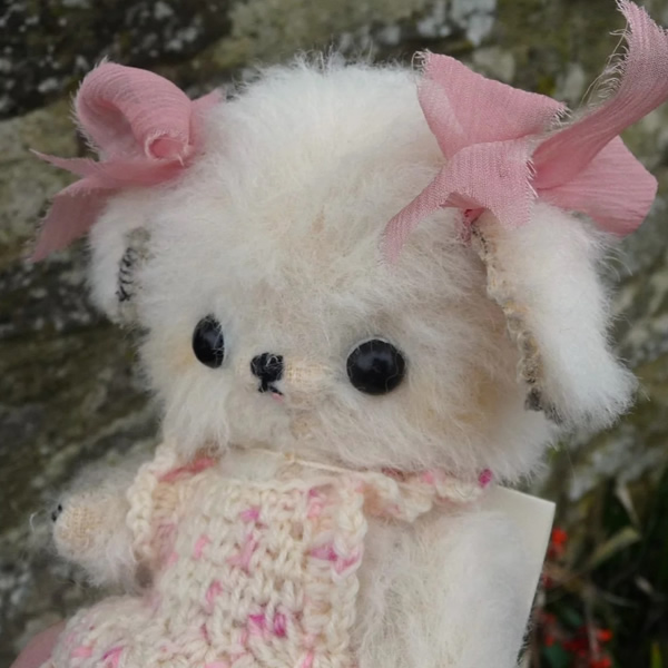 加茂美智子さん。東京都在住。小さい頃から手芸好きだった加茂さんは1997年からテディベアの制作を始められ、テディベア教室の講師科もご卒業になっています。素朴で笑顔が可愛いテディベアたちには穏やかでほんわかした加茂さんのお人柄が表れています。加茂さんの作品は、どの仔もボディは柔らかく適度な重みがあるため、抱き心地が良いのも特徴です。
