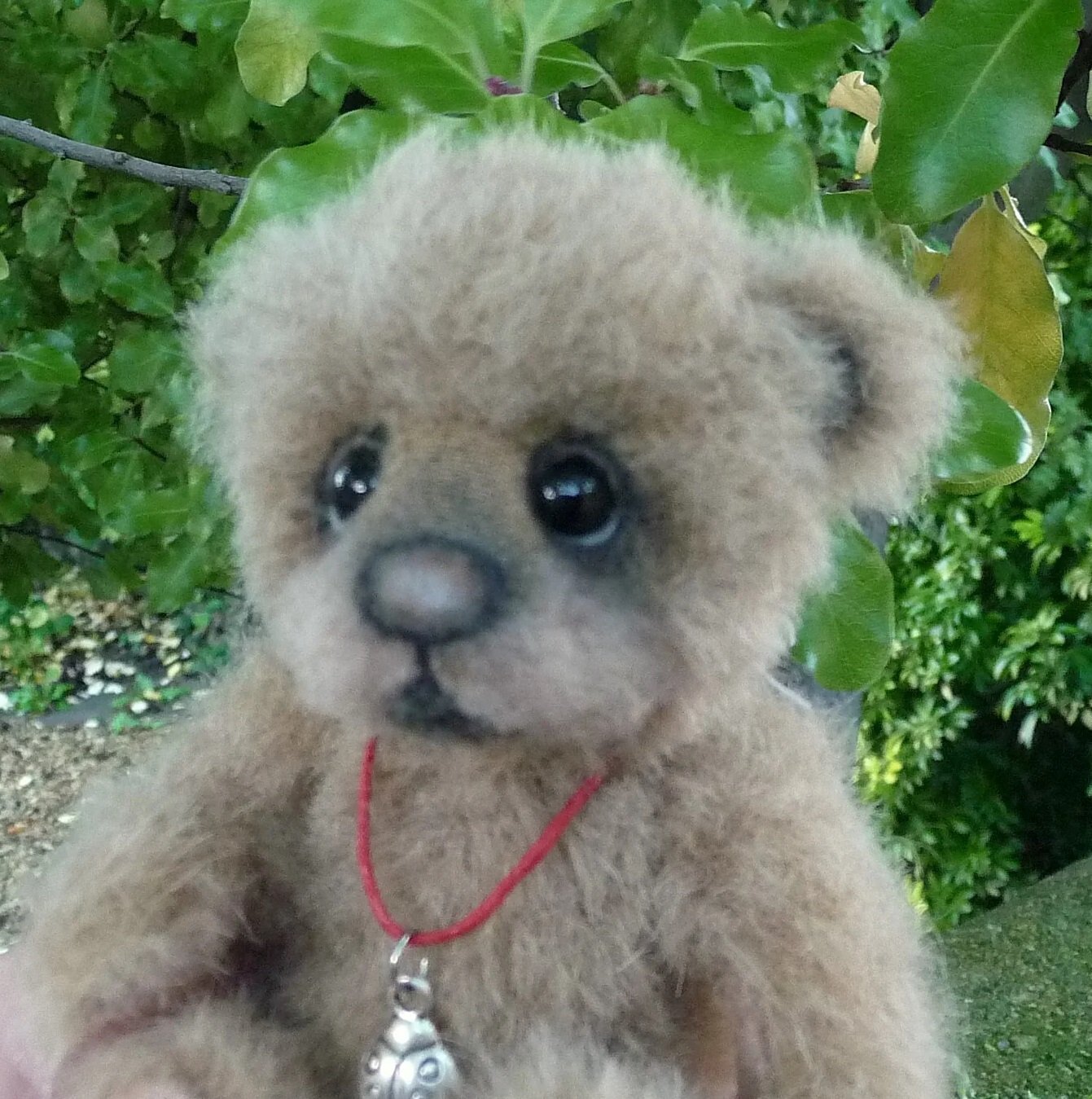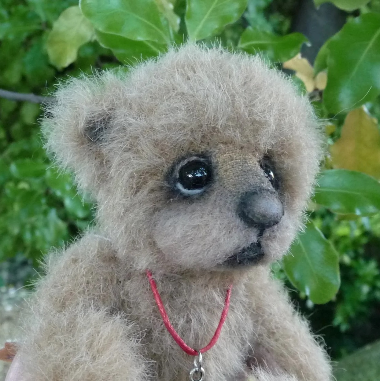 マズルにはウールカ使われ、黒いグラスアイの下にフェルトが敷かれて愛くるしい表情。