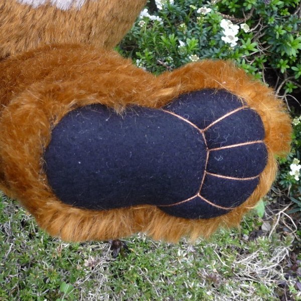 お腹はオートミール色のモヘア製。手足の裏のフェルトは立体的にステッチされています。