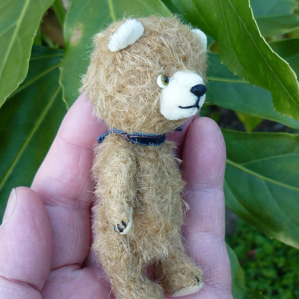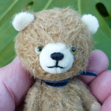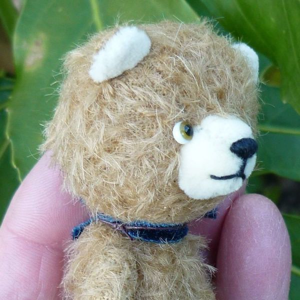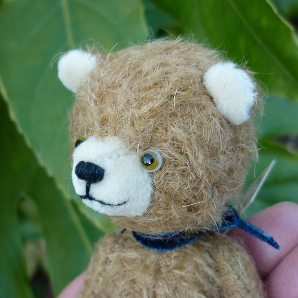 ライトブラウンのディストレストモヘアに、オフホワイトのマズルと耳の内側を合わせています。