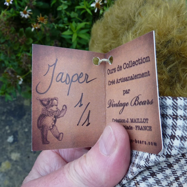 フランスの作家、"Vintage Bears"さんによる1点もののテディベア「ジャスパー」。