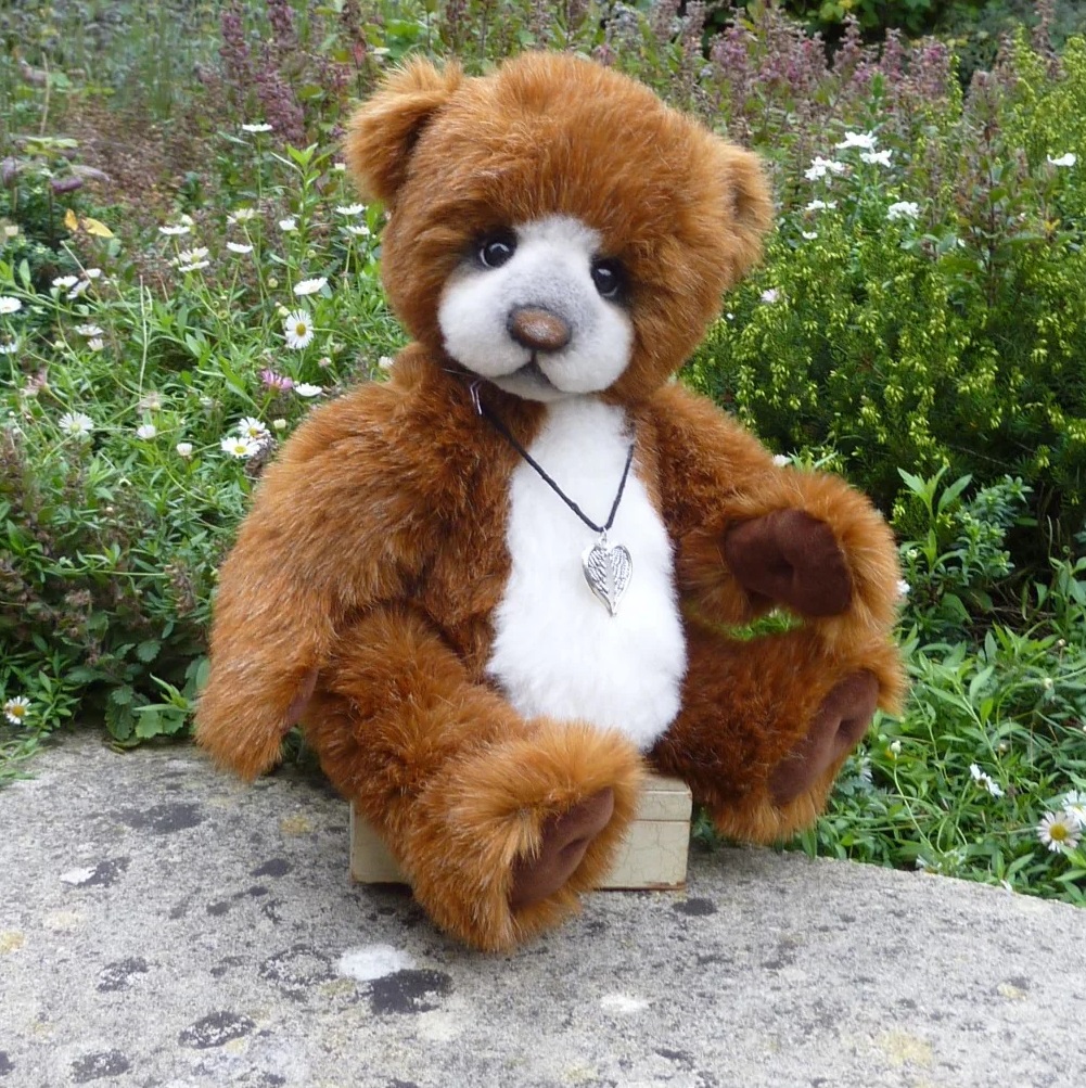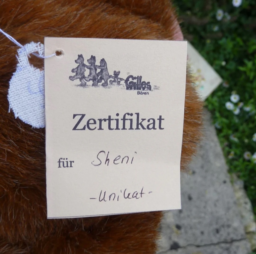 ドイツの作家、シルビア・ジルズさんの1点もののテディベア「シェニ」。