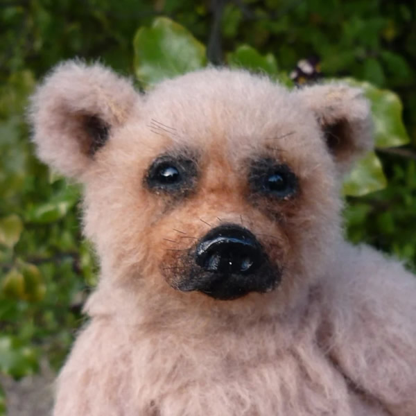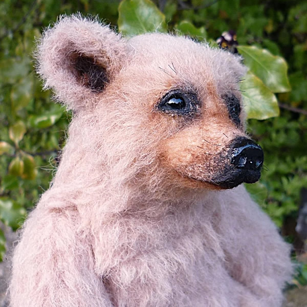 黒いグラスアイ。立体的な鼻づら。樹脂粘土の鼻。お顔にはエアブラシで丁寧に陰影が施されています。