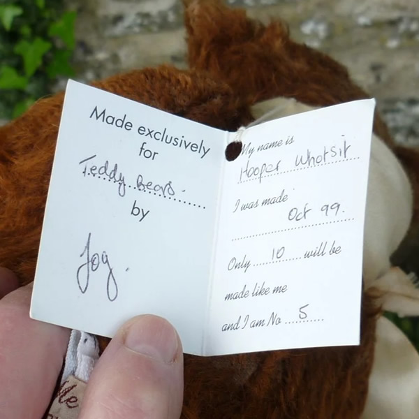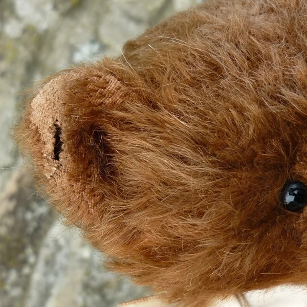 長く愛されてきたベアの雰囲気をもたせるために、片方の耳には穴が開けられ、鼻のステッチの一部がゆるくなっています。