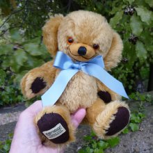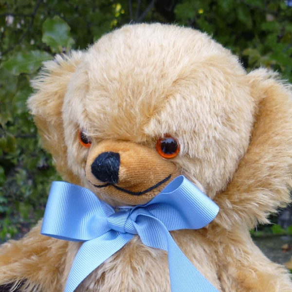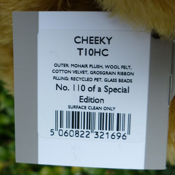 1958年の「ブリティッシュ・インダストリーズ・フェア」では、当時「テディT」と呼ばれていたこのベアをエリザベス女王二世がご覧になり、『なんて生意気な小さなクマなの!』と声を上げられたことから、「チーキー・ベア」という愛称が定着しました。チーキーとは「生意気な」という意味です。