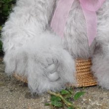 少しカールした、柔らかなライトシルバーグレーの合成繊維製。